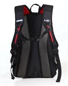 Tøff dagstursekk med 3 rom, samt utvendige flaskelommer på hver side. Rommet nærmest rygg har også opphengskrok for drikkepose(Liquid Bag – Art. 9059), og utgang for drikkeslange, slik at man har drikke tilgjengelig uten å ta av sekken. Kraftig polstring med god ventilasjon i rygg, samt justerbar bryststropp og kompresjonsstropper på hver side. Elastisk stropp for festing av vått tøy/etc. utvendig. Reflekser både foran og bak. Ca 25 liter.